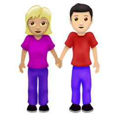 | מַשְׁמָעוּת | איש ואישה מחזיקים ידיים: גוון עור בהיר בינוני, גוון עור בהיר |