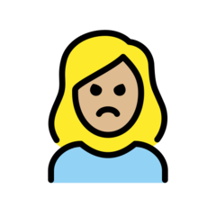 | קוד קוד | U+1F64E 1F3FC 200D 2640 1F64E - 🙎 אישה זועפת |
